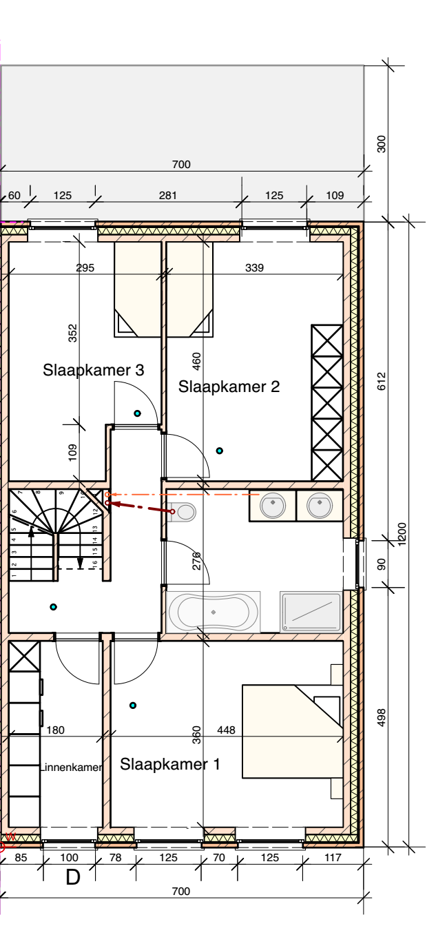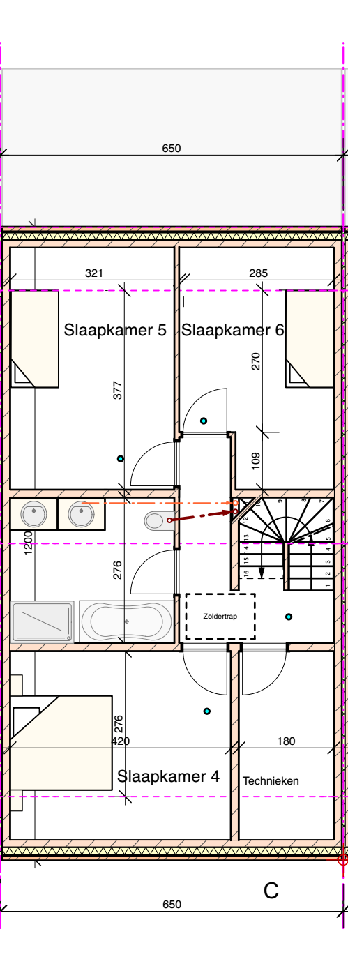 Zolderverdieping: optioneel volledig verder af te werken naar eigen keuze (extra slaapkamers, bureel...)